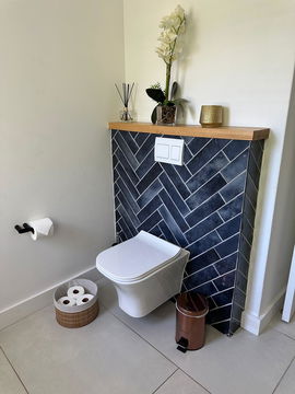 Guests are stylishly accommodated in a serene space decorated in elegant blue and white tones. The air-conditioned bedroom offers flexibility and can be configured as either a King or Twin Room.